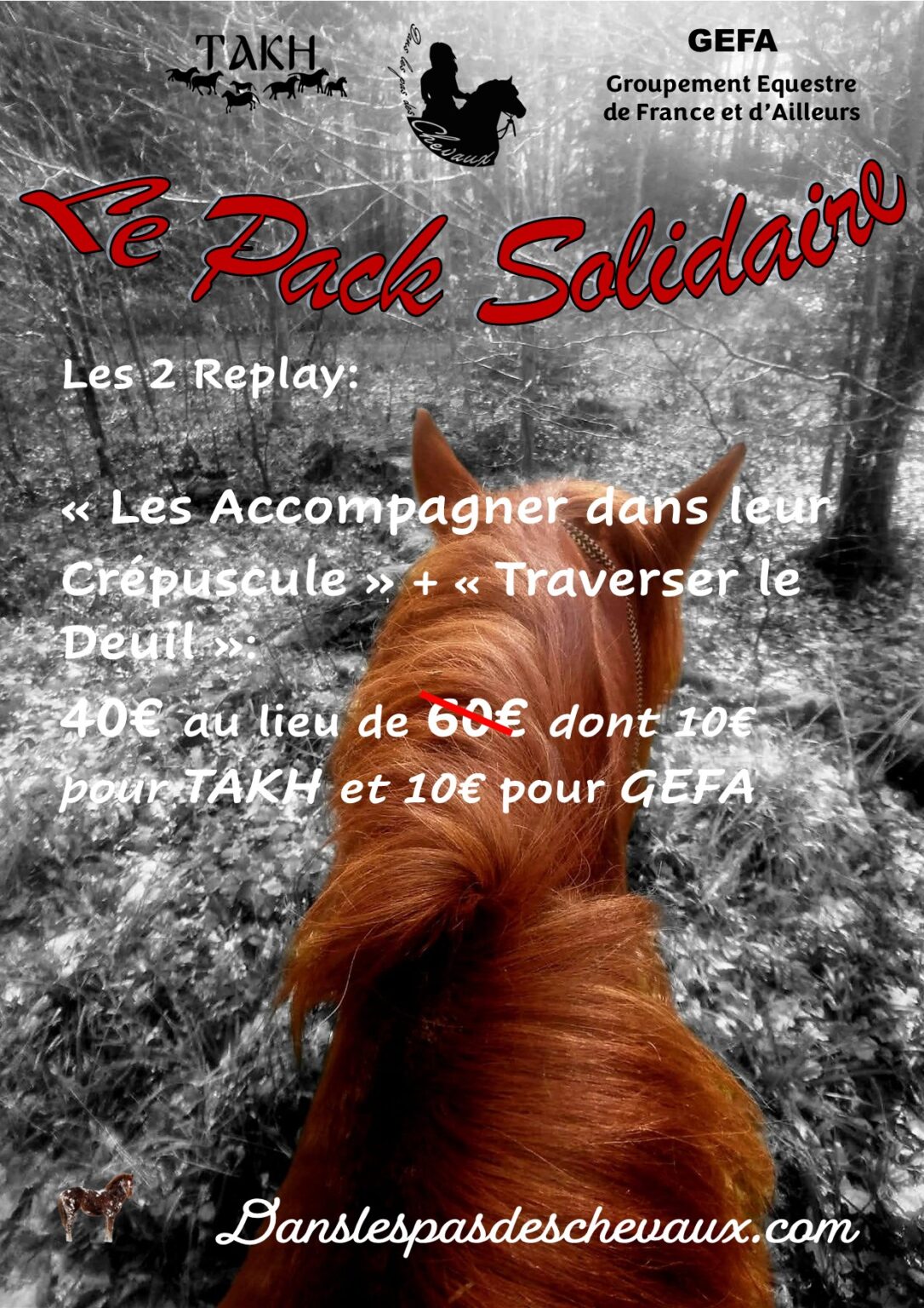 En commandant ce pack, vous soutenez également les associations Takh et GEFA (Groupement Equestre de France et d’Ailleurs), puisque 10€ seront reversés à chacune d’elles. Merci infiniment.